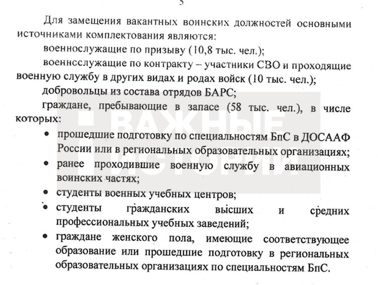 58 тыс. человек должны набрать из студентов, выпускников курсов по управлению БПЛА, бывших военнослужащих авиационных частей и «граждан женского пола» с соответствующей подготовкой.